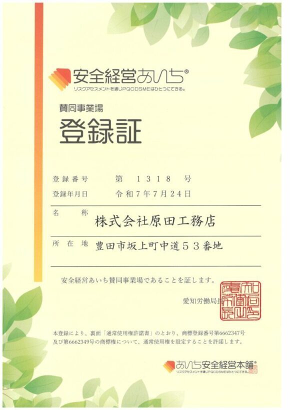 2025.12.09 SDGs認証制度 ブロンズ認定を更新しました 豊田市SDGs認証制度においてブロンズ認証を更新しました。 詳細はこちら 2025.11.03 自社SNSを発信しています Instagram 詳細はこちら 2025.11.03 自社SNSを発信しています プラットフォームクローバ 詳細はこちら 2025.10.20 プレスリリース SBT認証 詳細はこちら 2025.10.16 2025豊田市国際首長フォーラムに協賛企業参加しました。 2025豊田市国際首長フォーラムに協賛企業として参加しました。 弊社のSDGsの取り組み紹介パネルとカーボンニュートラルの 取り組みをパネルを作成し報告しました。 パネルは日本語表記と英語表記の併用で、海外からの参加者の方へ お伝えすることができ、有意義な機会となりました。 国際首長フォーラムパネル 詳細はこちら 2025.10.10 カーボンニュートラルの取り組み SBT認定を取得しました 令和7年10月 SBT 認定取得 株式会社 原田工務店は 令和7年10月 SBTiサービスのSME基準評価指標(Ver1.0 ) に基づいて弊社のターゲットを評価し承認されました。 原田工務店は、2024年を基準年として、2030年までにスコープ1とスコープ2の 温室効果ガス排出量を42%削減し、スコープ3の排出量を測定し削減することを 約束します。 令和7年1… 詳細はこちら 2025.09.26 豊田市消防本部と土砂災害合同訓練を実施しました 豊田都市整備研究会 東部地区5社と豊田市消防本部南分署との土砂災害合同訓練を実施しました。豪雨災害等で土砂と倒壊家屋の下敷きになった人を救助する訓練を想定し3時間の訓練となりましたが、実践に近い形で行うことができ、実り多い訓練となりました。今後も定期的に実施していく予定です。 詳細はこちら 2025.09.24 愛知労働局 安全経営あいち賛同事業所 建設業労働災害防止総決起大会に参加しました。 安全講話、災害防止重点対策などについて理解を深める 機会となりました。また豊田労働基準監督署長様から 「安全経営あいち賛同事業所」として登録証を授与して いただきました。 詳細はこちら 2025.07.08 (CSR報告)松平中学校 様へ プール用安全マットを贈呈しました 豊田市立松平中学校 様へプールサイドへ敷設する安全マットを贈呈しました。 屋外プールサイドは非常に熱くなりやすく、やけどの危険性があり、マットを設置 することにより生徒様の安全を確保できるきっかけになればと思い贈呈させていただきました。 詳細はこちら 2025.07.04 (環境報告)環境車両を導入しました 車両の入替時は、すべて環境対応車を選択し、カーボンニュートラルに向けて準備を進めています。 詳細はこちら 投稿ナビゲーション 1 2 3 >>