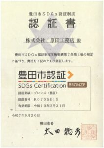 豊田市SDGs認証制度においてブロンズ認証を更新しました。